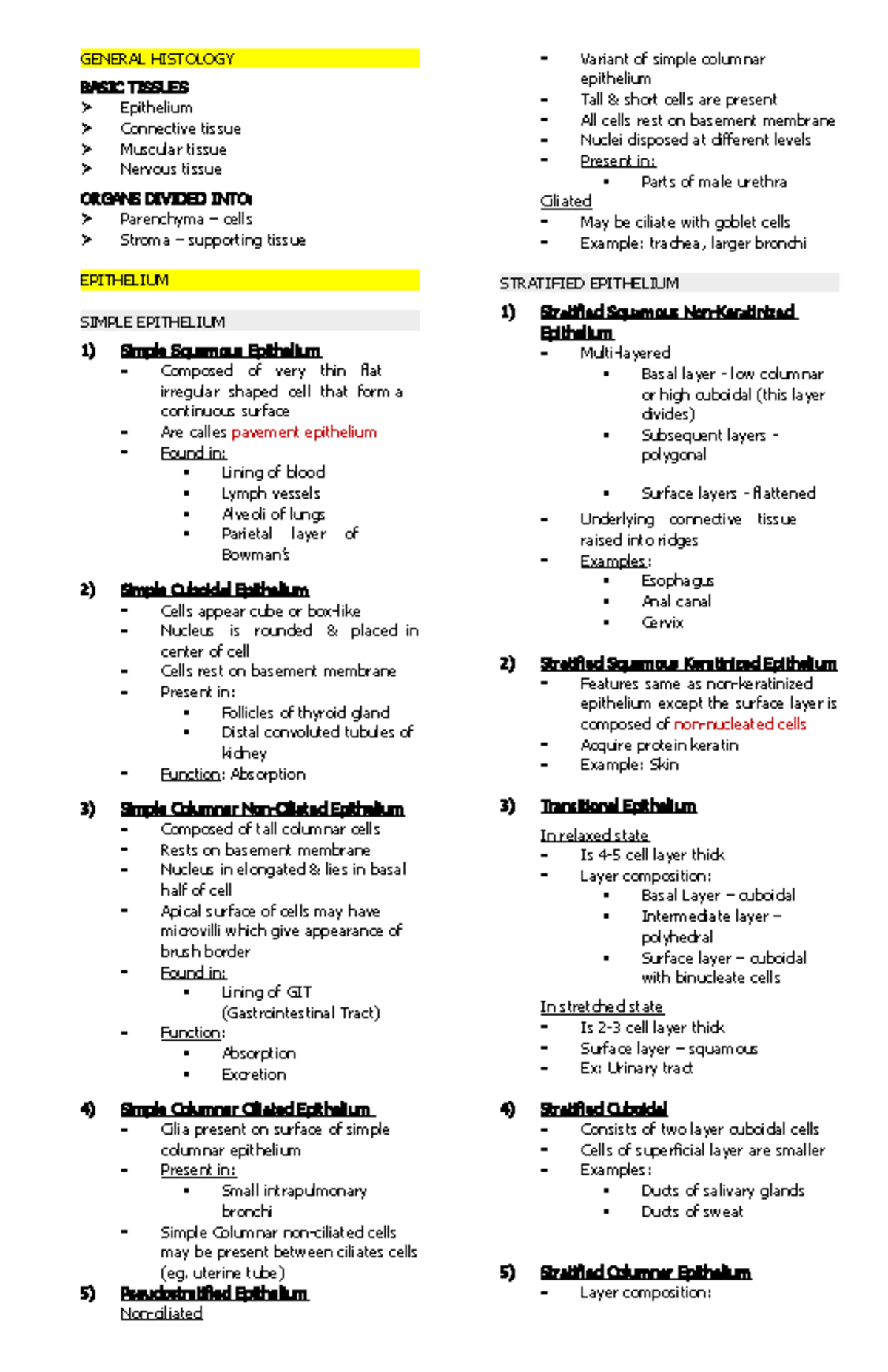 General- Histology - GENERAL HISTOLOGY BASIC TISSUES Epithelium ...