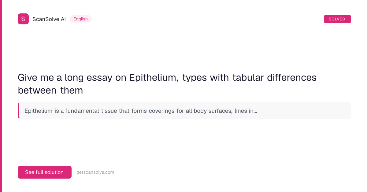 Solved: Give me a long essay on Epithelium,… | English | ScanSolve