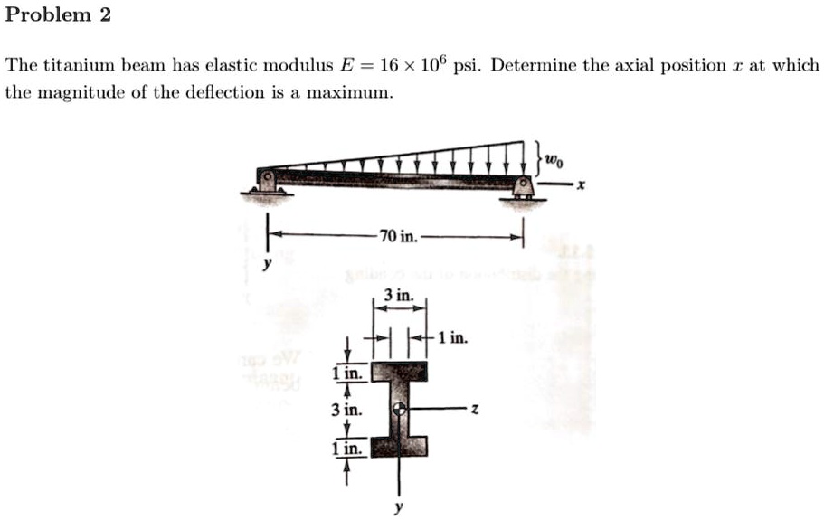 SOLVED: Problem The titanim beam has elastic modulus E = 16 x 106 psi ...