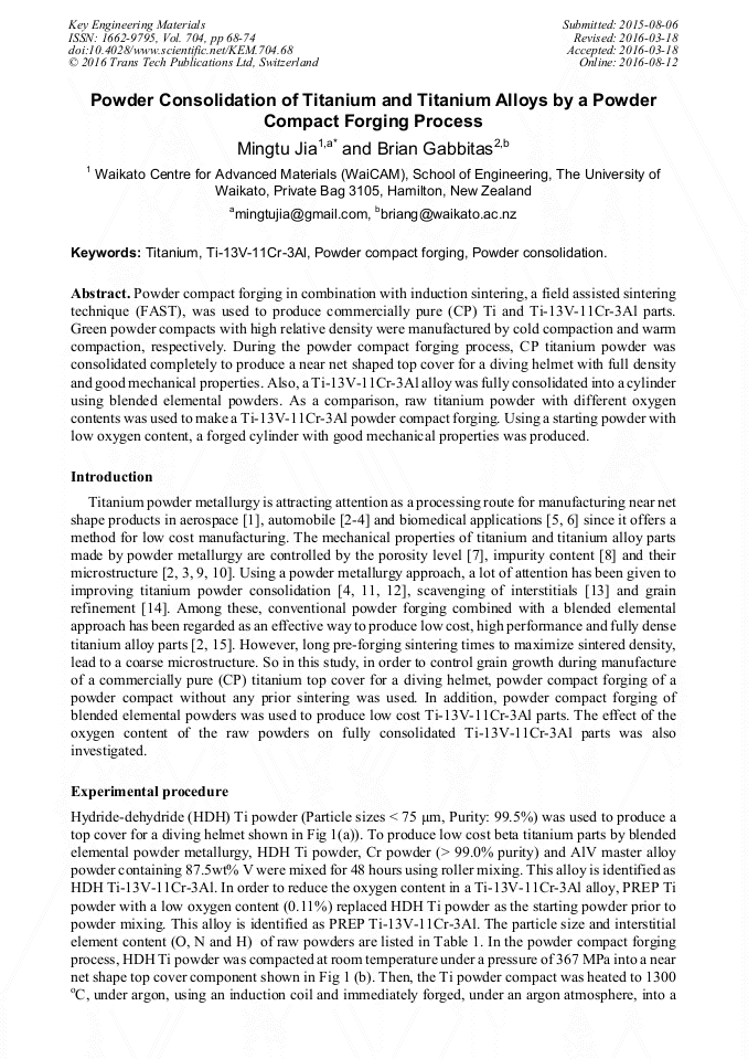 Powder metallurgy of titanium – past, present, and future - Zhigang Zak ...