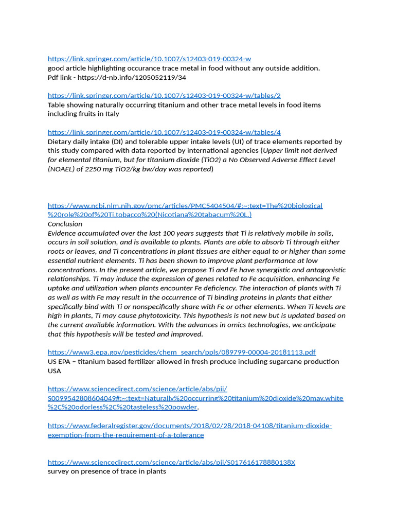 Titanium Source of Trace in Food Data 16042024 | PDF | Iron | Titanium