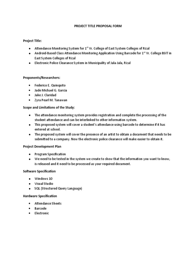 Project proposal title example in Computer Studies | Project proposal ...