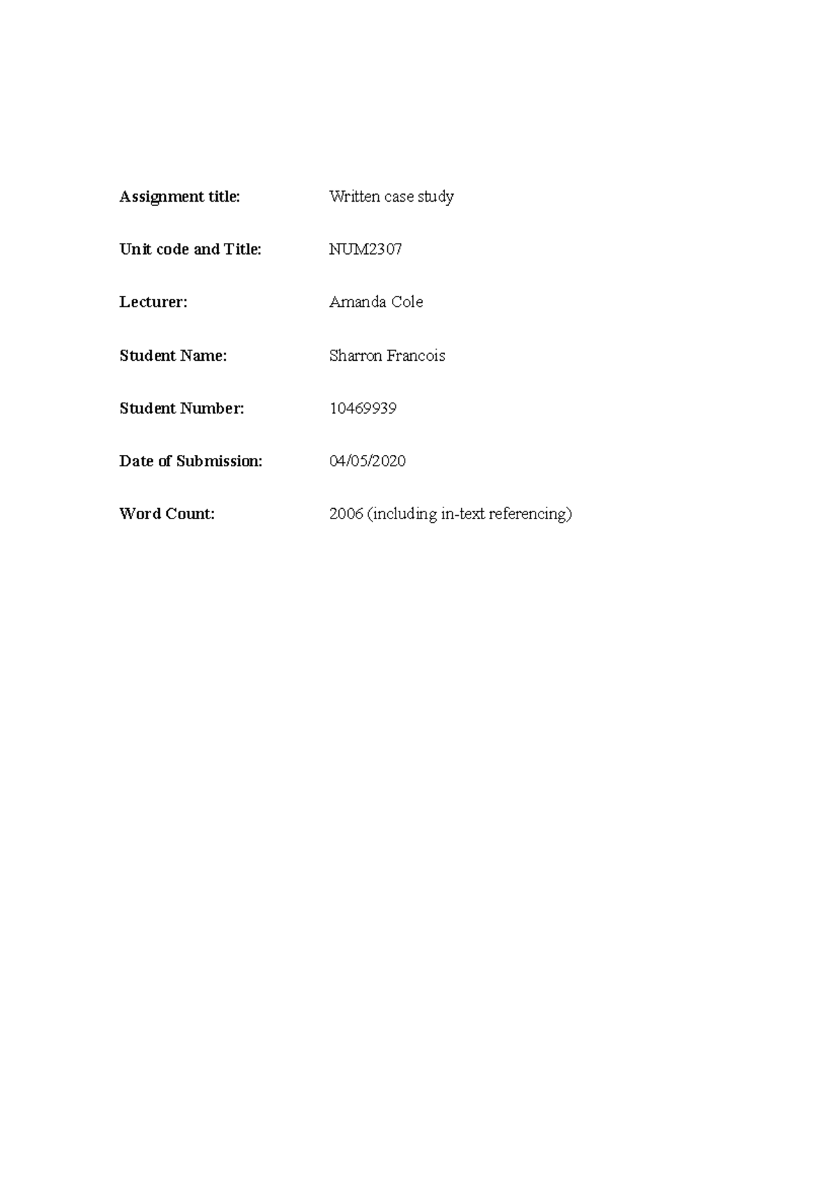 Written case study Final - Assignment title: Written case study Unit ...