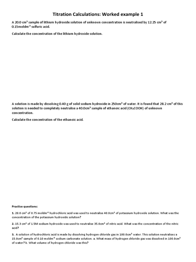 Step-by-Step Worked Examples and Practice Questions for Titration ...
