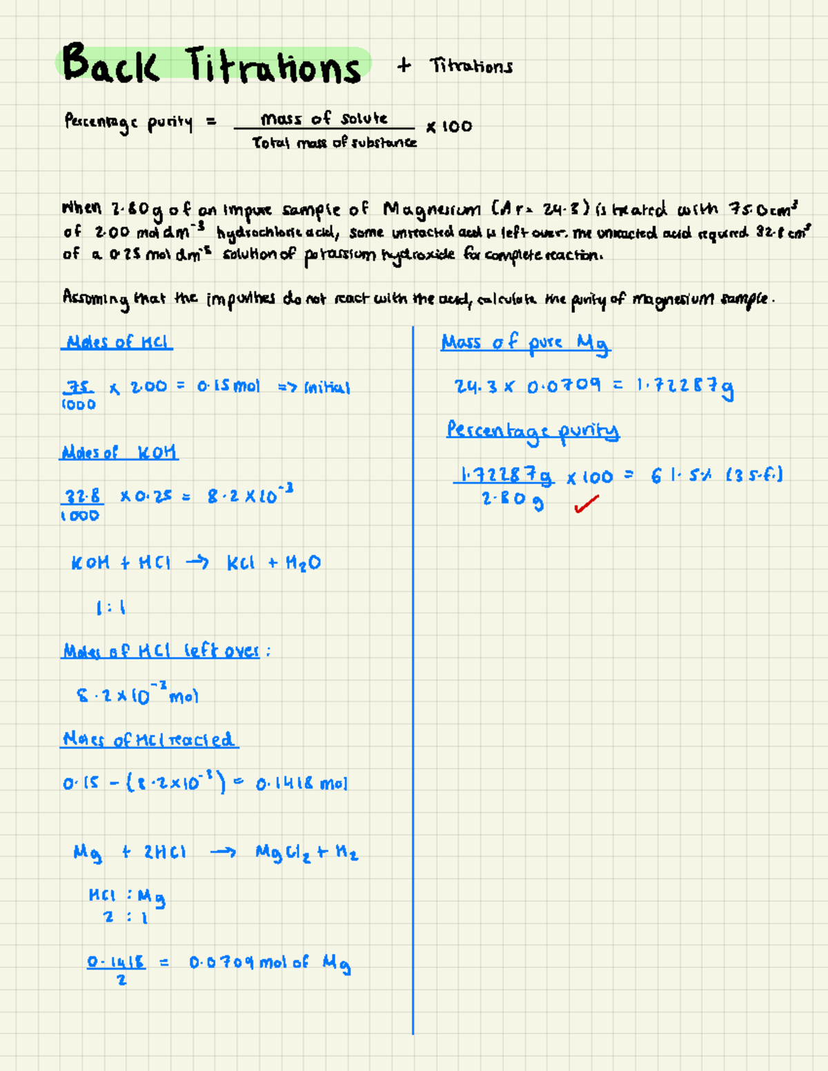 Back Titrations (Are 24 3) - Notes & Examples of Titration Questions ...