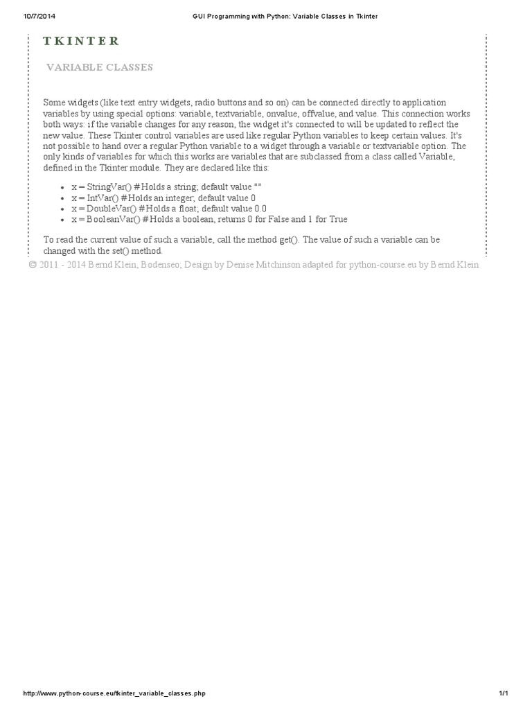 Tkinter Variable Classes Guide | PDF | Teaching Methods & Materials ...