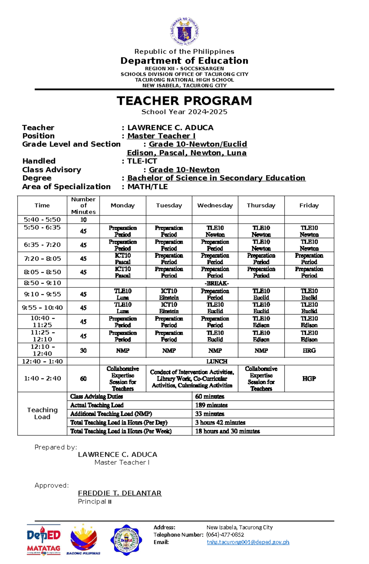 TLE-ICT Teacher Program with Teaching Hours - SY 2024-2025 - Studocu