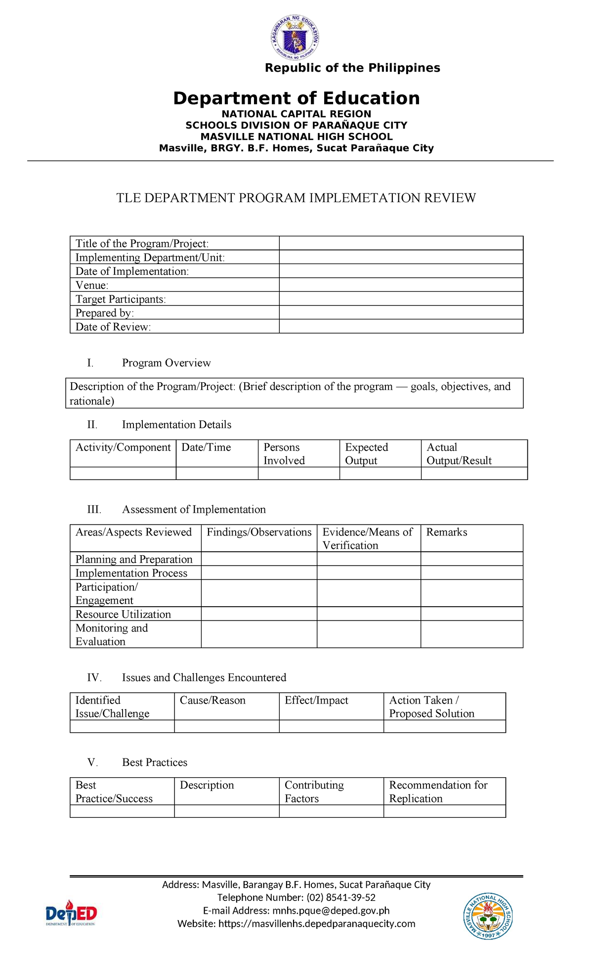 PIR Review: TLE Program Implementation at Masville National HS - Studocu