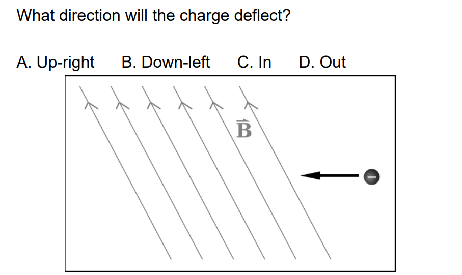 Solved What direction will the charge deflect? A. Up-left B. | Chegg.com