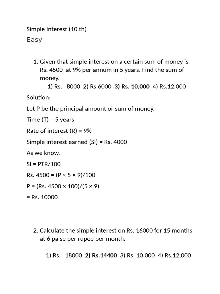 Simple Interest 10 TH | PDF | Interest | Financial Services
