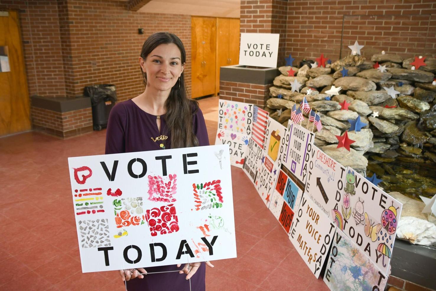 A woman holds a sign that reads Vote Today | | The Berkshire Eagle