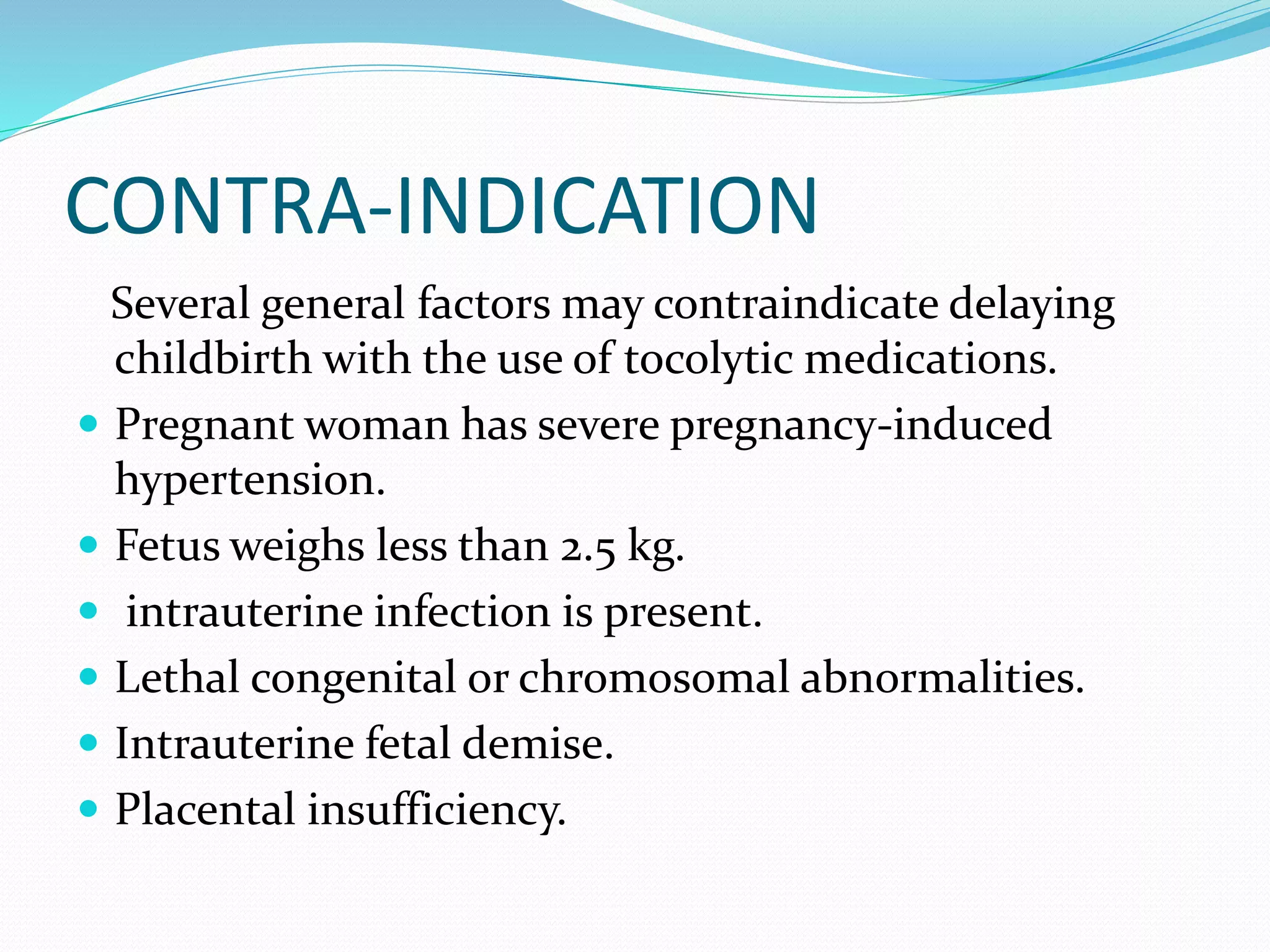 Options for tocolytic drugs, its contraindication, side effects, and ...