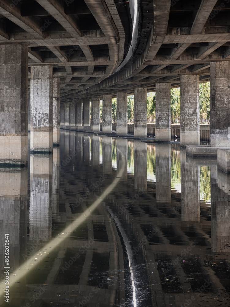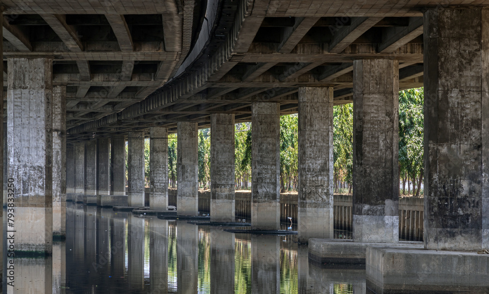 Perspective view of concrete pillars under Khlong Toei Expressway, with ...