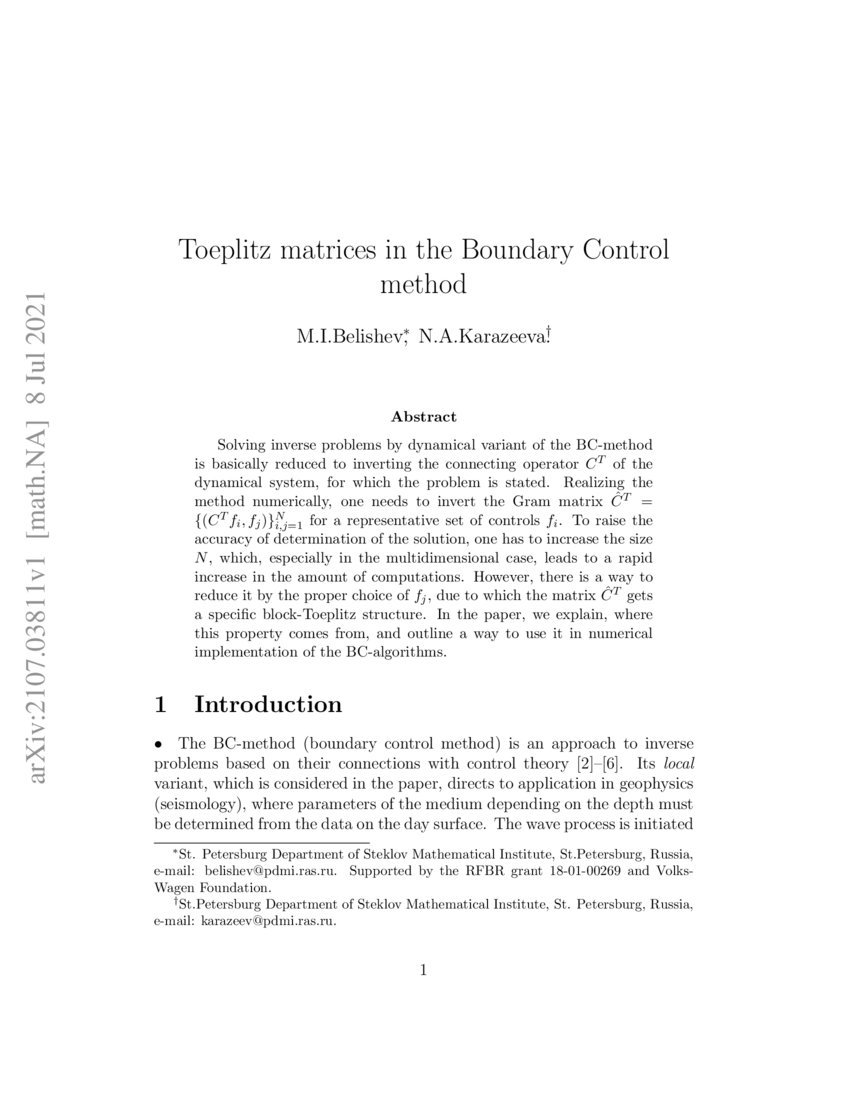Toeplitz matrices in the Boundary Control method | DeepAI