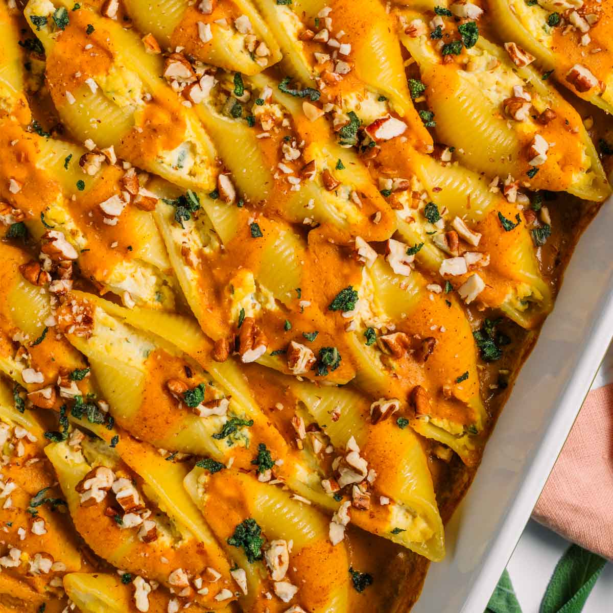 Vegan Stuffed Shells - Tofu Ricotta & Pumpkin Sauce • Tasty Thrifty Timely