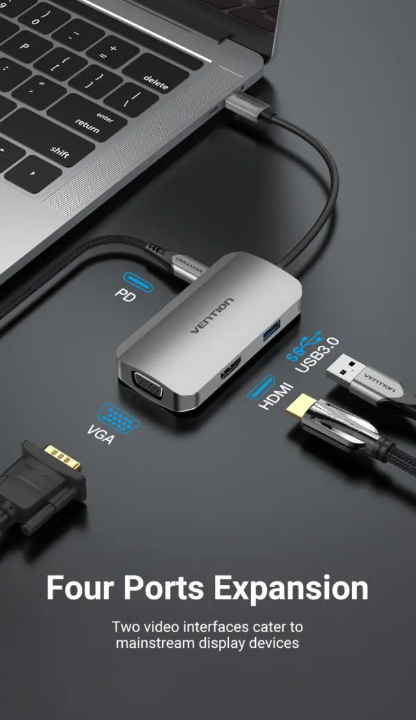 VENTION TOAHB MULTI-FUNCTION USB-C 4-IN-1 DOCKING STATION ALUMINUM ...