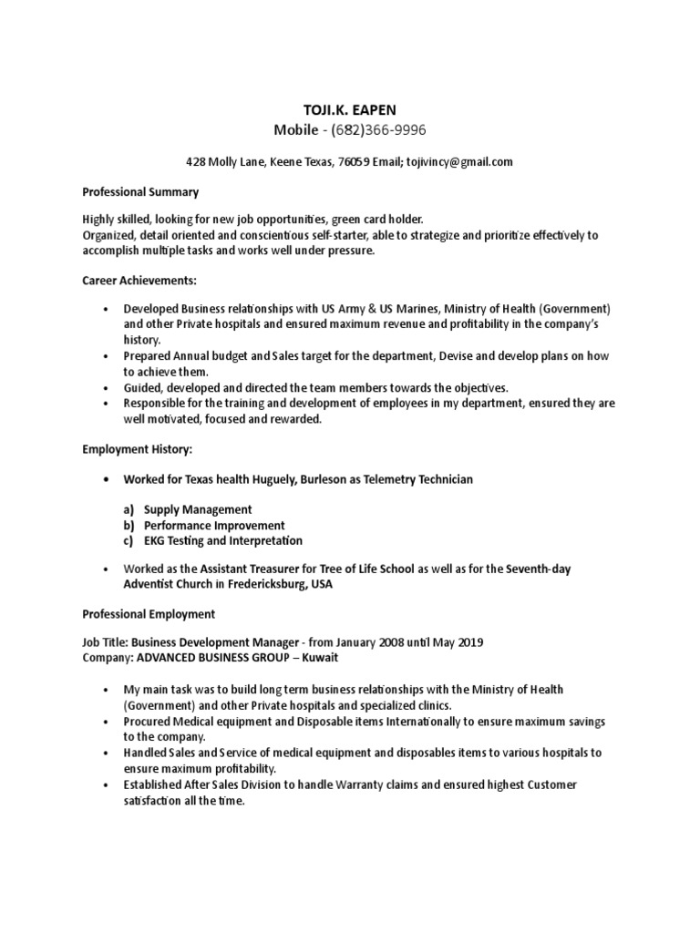 Toji+ +resume (Tele) | PDF | Sales | Health Care