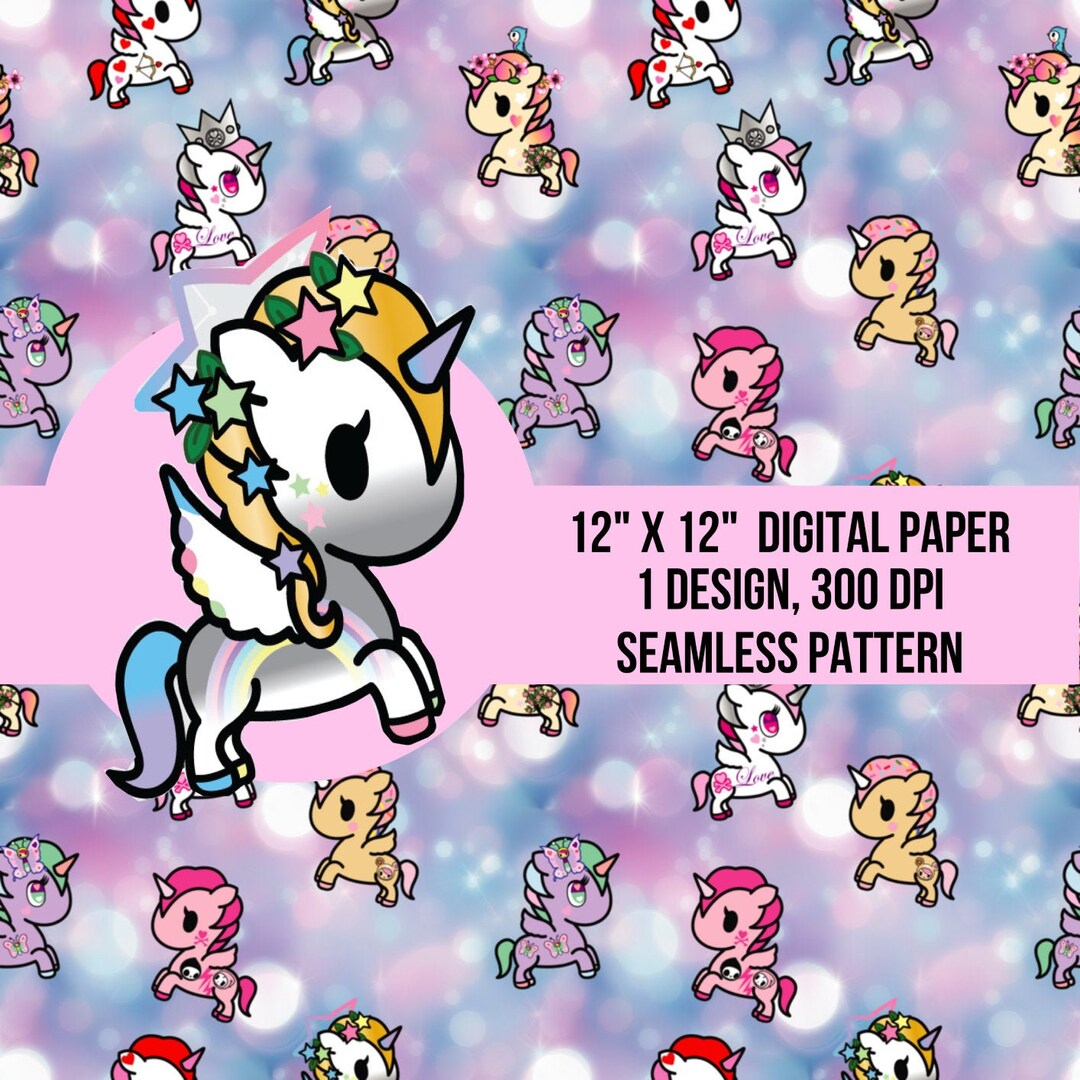 Kawaii TOKIDOKI Seamless Digital File, UNICORNO Cartoons for Craft ...