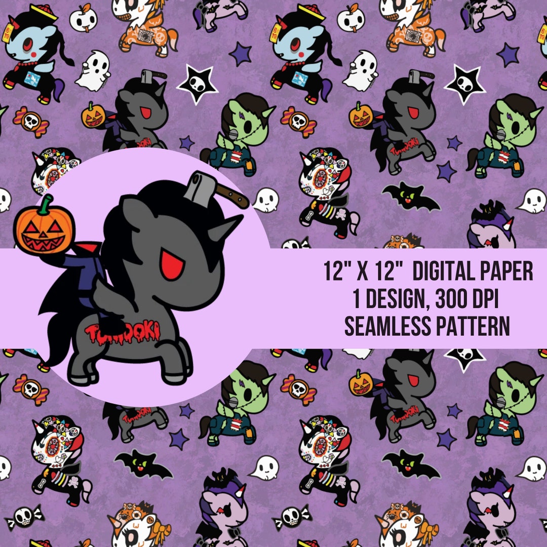 Kawaii TOKIDOKI Seamless Digital File HALLOWEEN Unicorno Rainbow ...