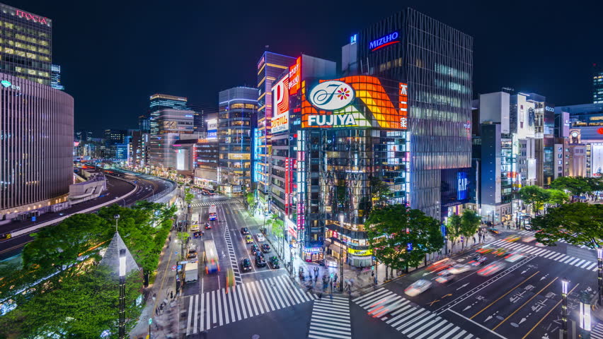 Japan, Tokyo, Ginza, Elevated View Of Sukiyabashi Pedestrian Crossing ...