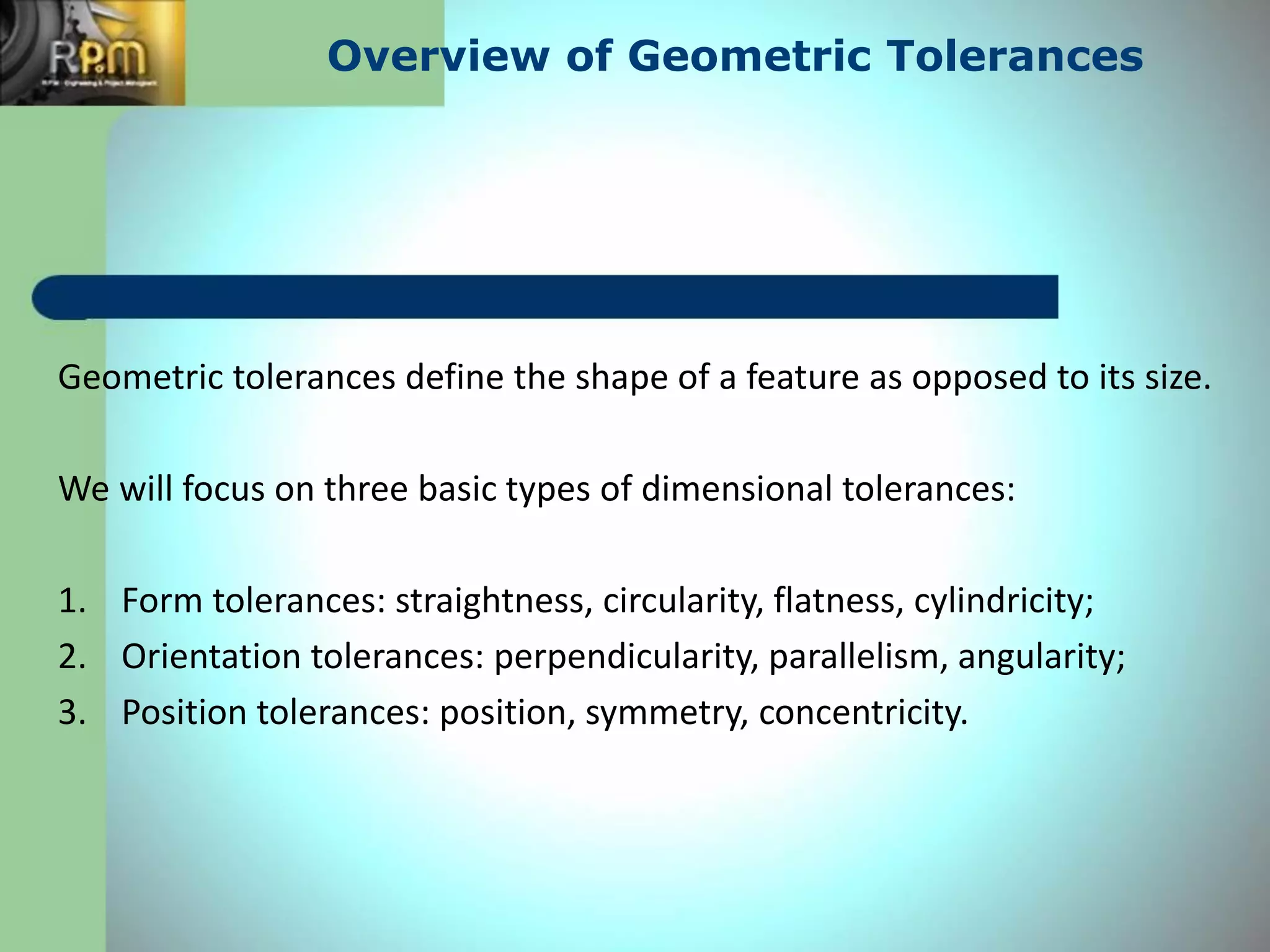 Tolerance of Size and Geometry: Shape or Form Orientation Position ...