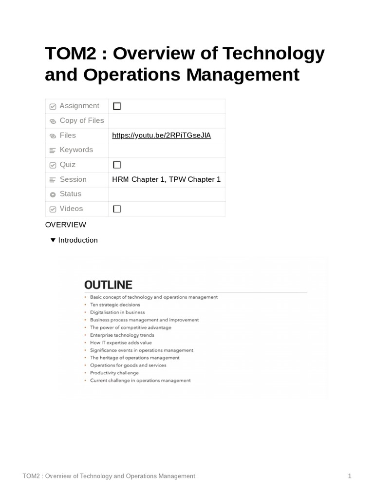 TOM2 Overview of Technology and Operations Management | PDF