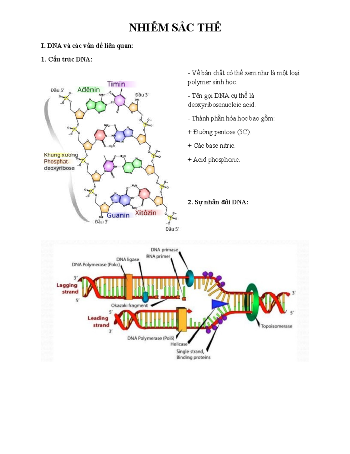 Tóm tắt DNA - NHIỄM SẮC THỂ I: Cấu trúc và Nhân đôi - Studocu
