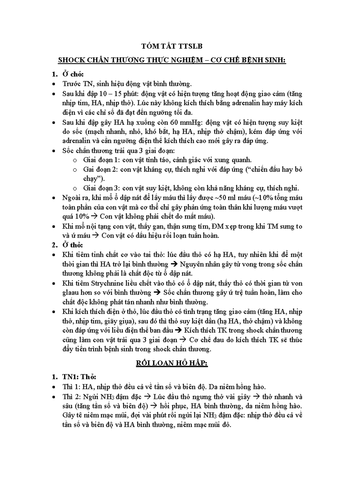 Tóm Tắt TTSLB Shock Chấn Thương và Rối Loạn Hô Hấp, Tiêu Hóa - Studocu