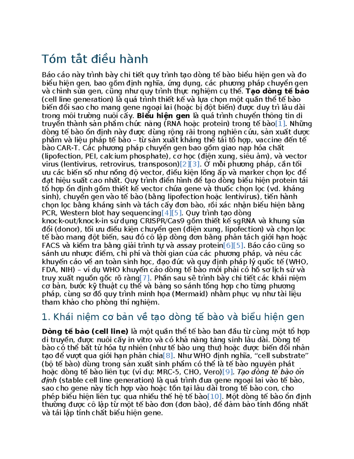 Tóm tắt điều hành: Quy trình tạo dòng tế bào và biểu hiện gen - Studocu