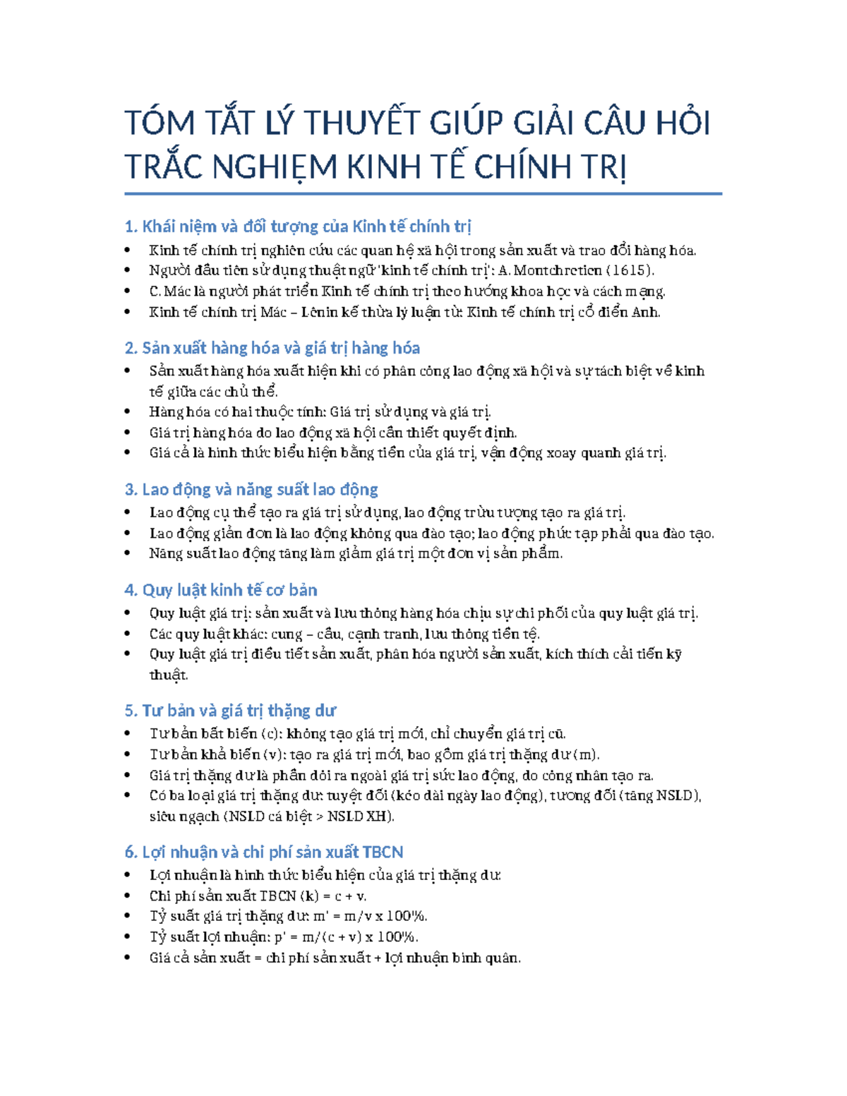 Tóm Tắt Lý Thuyết Kinh Tế Chính Trị 1 - Phần 3 - Studocu