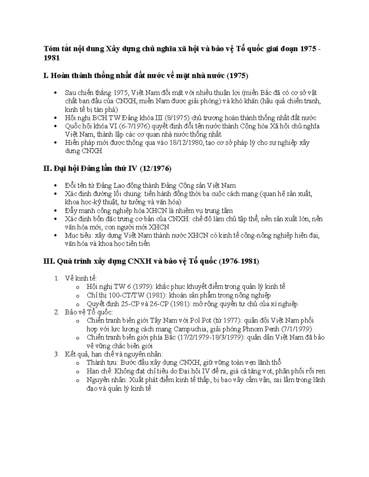 Tóm tắt nội dung Xây dựng CNXH và Bảo vệ Tổ quốc (1975-1981) - Studocu