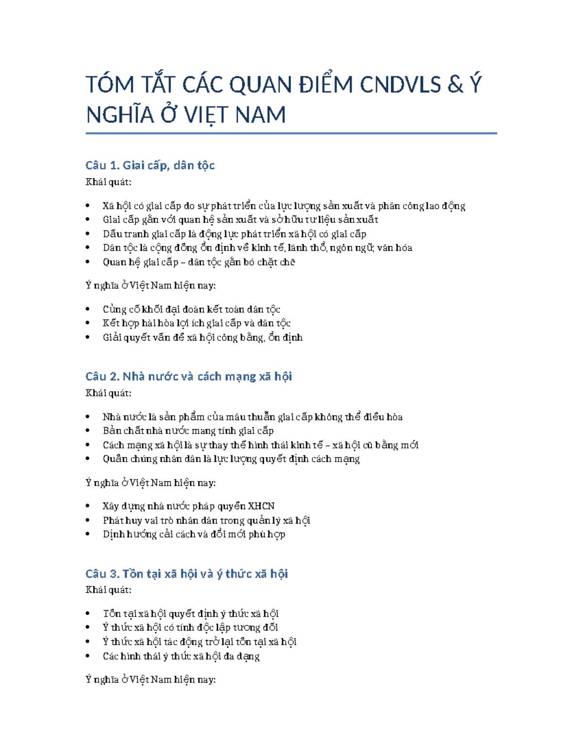 Tóm Tắt CNDVLS: Quan Điểm Về Giai Cấp và Dân Tộc Tại VN - Studocu