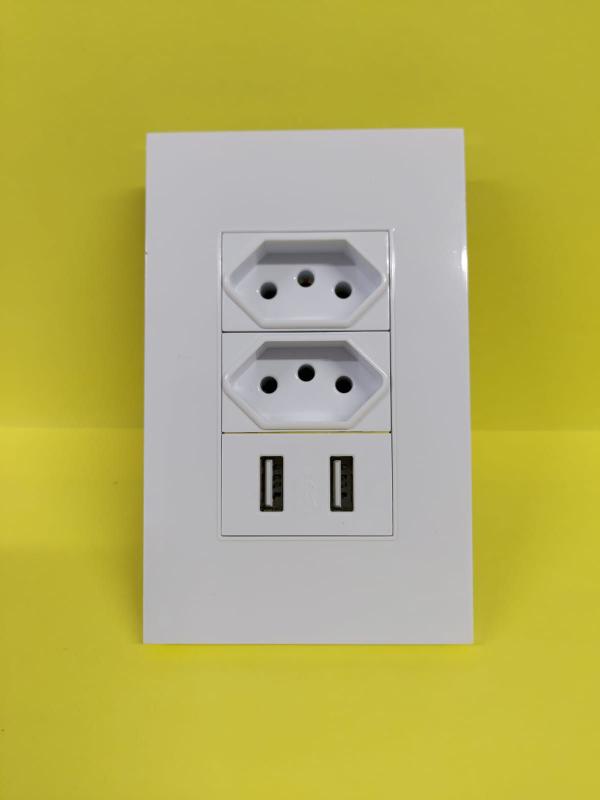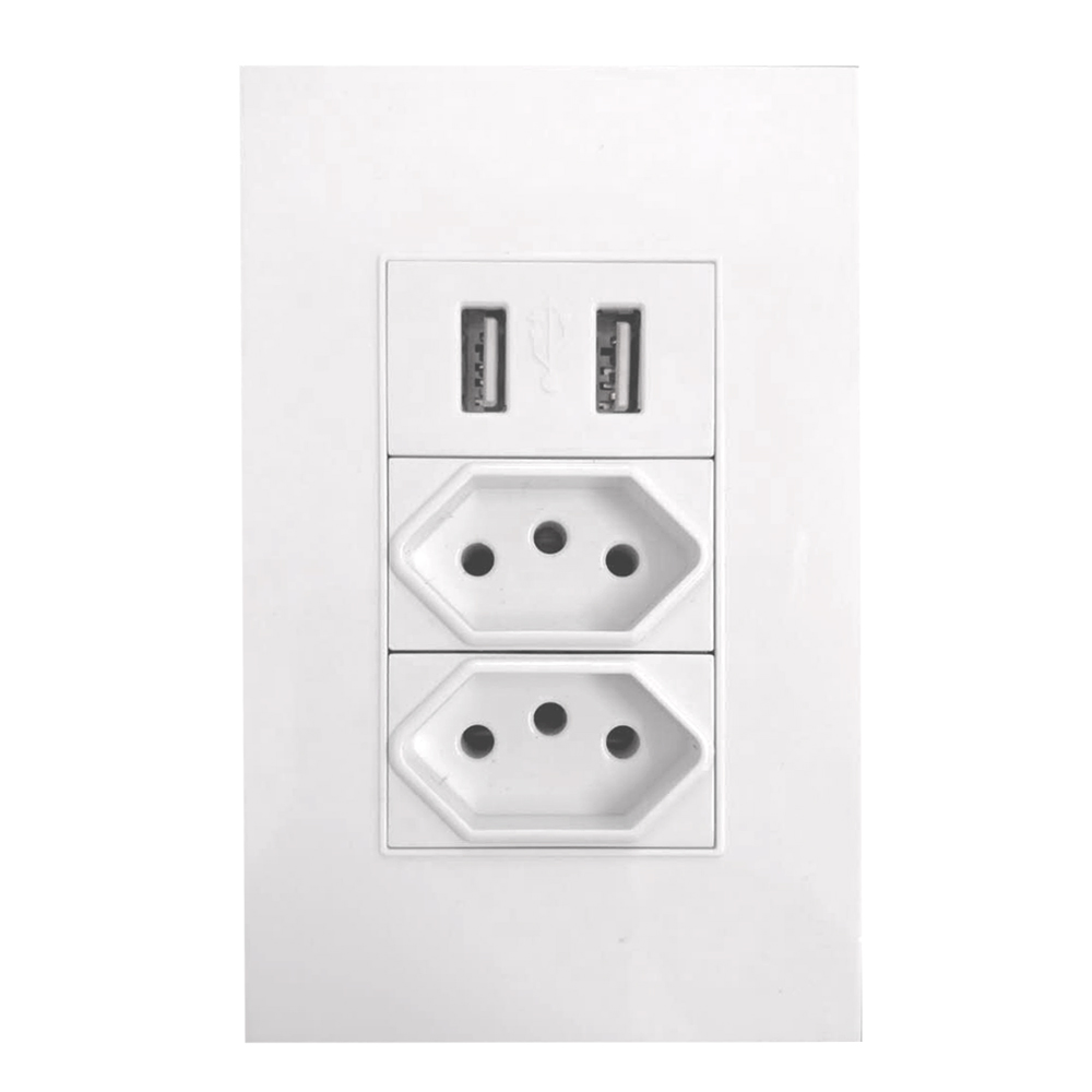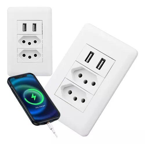 Tomada Usb Duo De Parede Conjunto Com 2 Tomadas E 2 Entradas Usb (rn ...