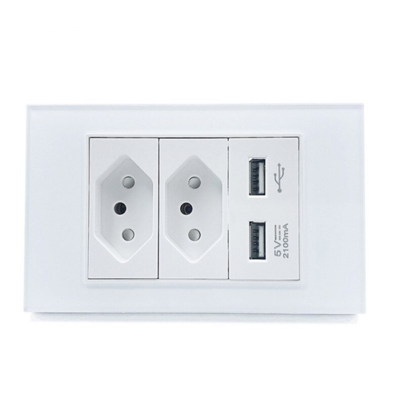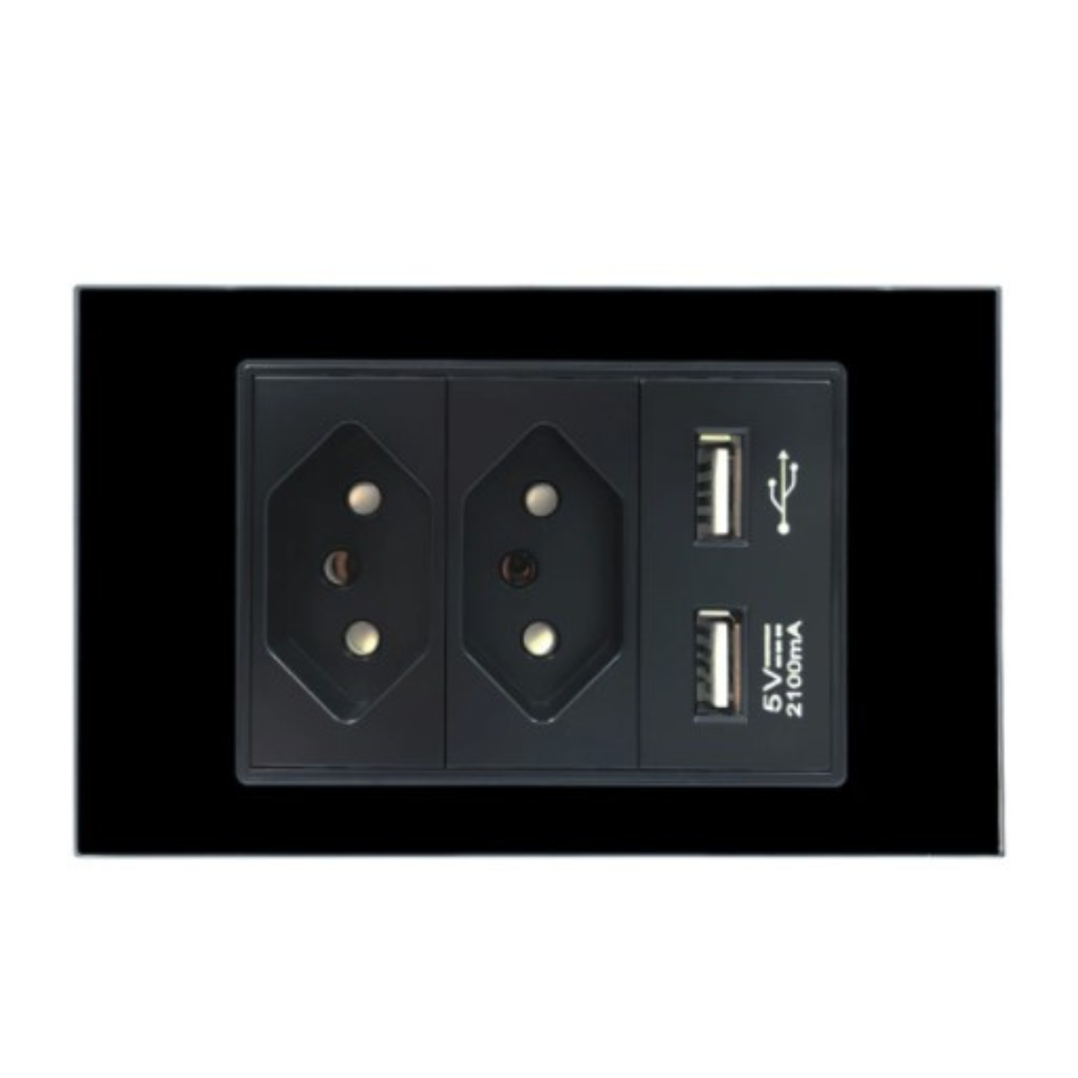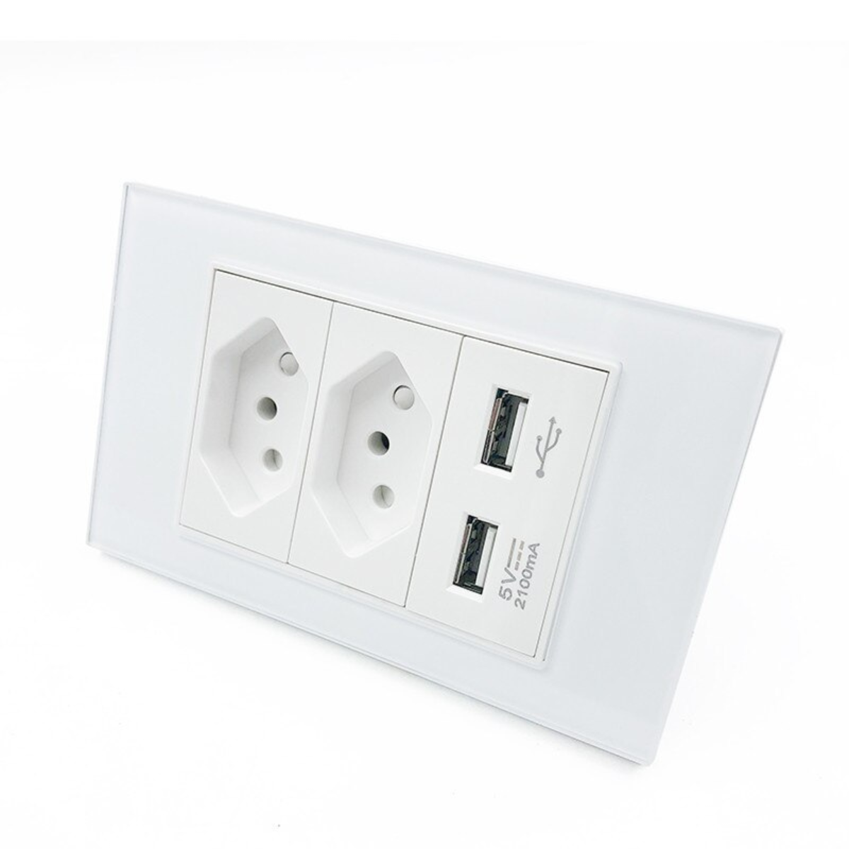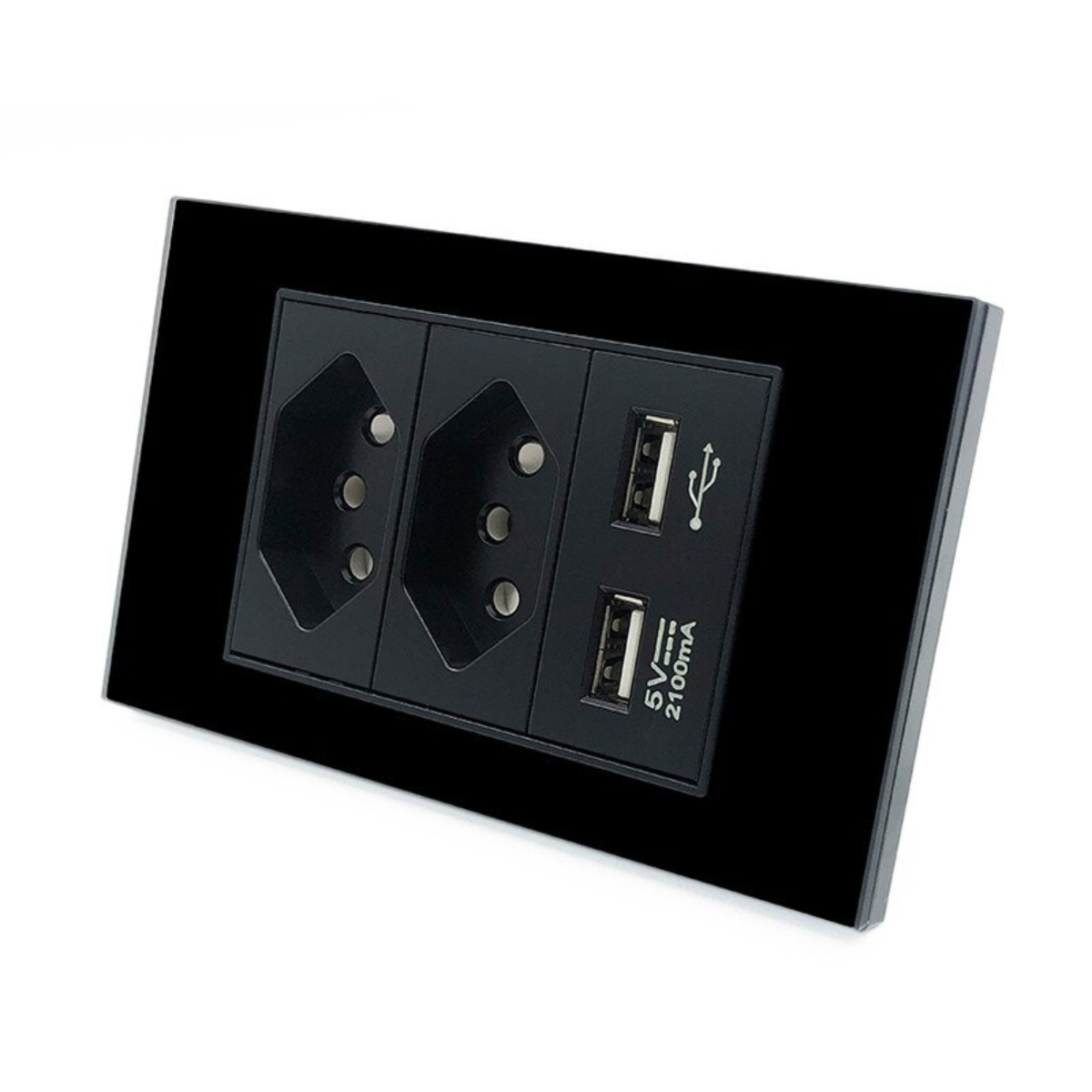 Tomada Dupla 10A ou 20A com Carregamento USB Painel de Vidro 4x2 ...