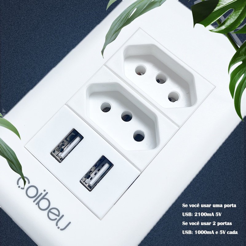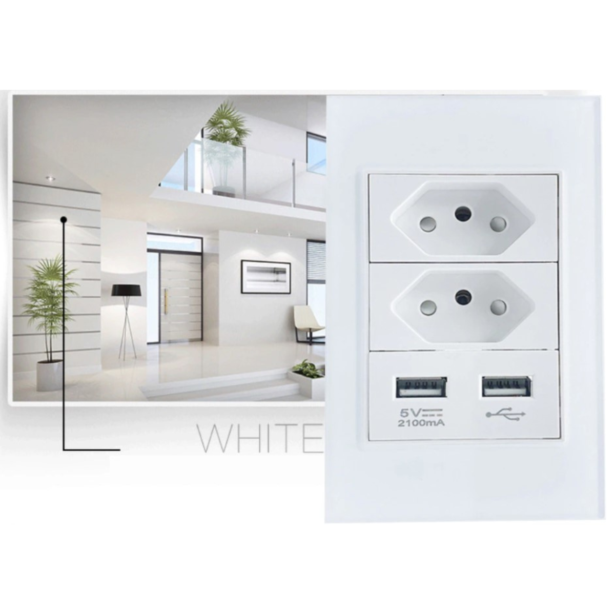 Tomada De Parede Dupla Modular com 2 Entradas Usb 2.1 5V Carregador ...