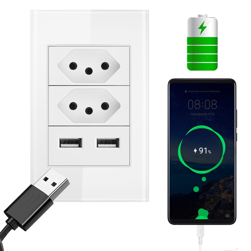 Tomada Dupla Usb De Parede Universal Bivolt 2.1a Celular 4x2 | MercadoLivre