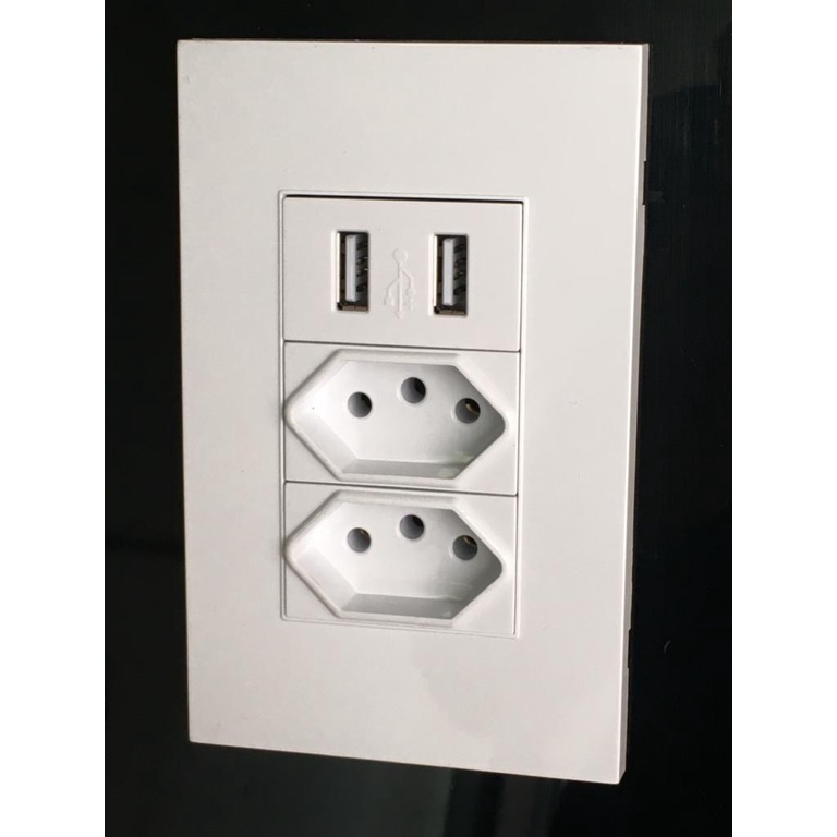 Tomada USB Parede Com 2 Tomada Energia 2 Usb De Parede Bivolt | Shopee ...