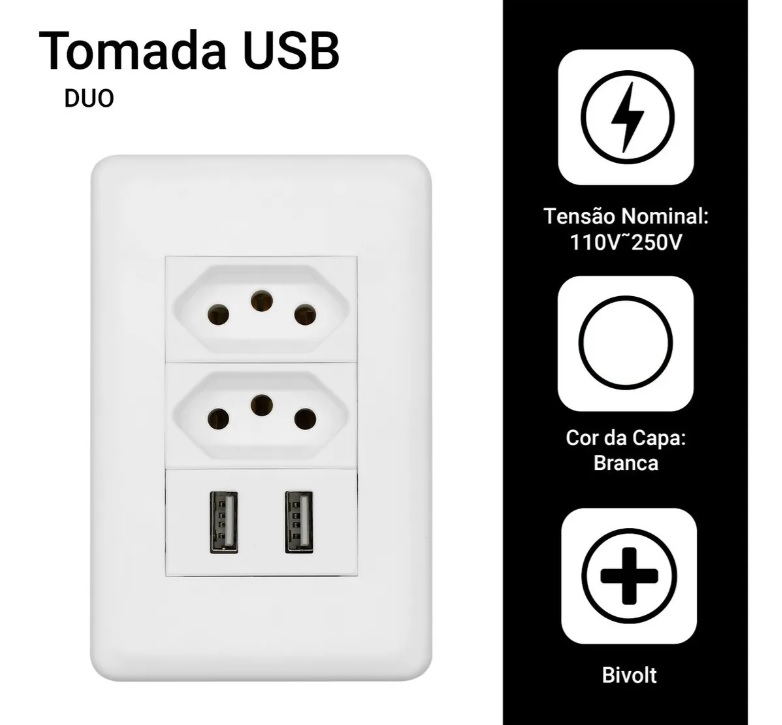 Tomada Usb Universal Duo 2 Tomada de Parede Bivolt Multifuncional com ...
