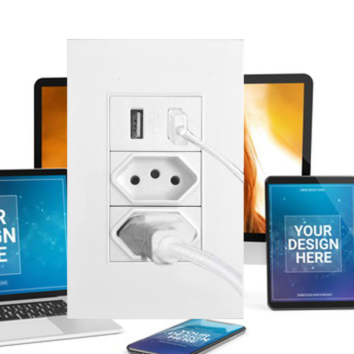 Tomada USB Universal Tomada De Parede Bivolt Multifuncional Com 2 ...
