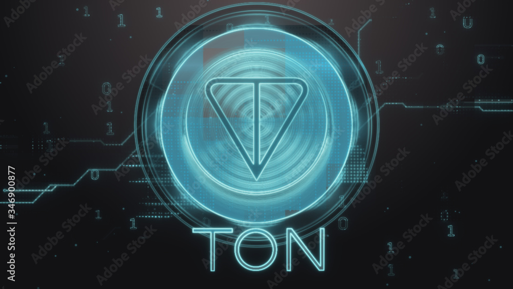 Ton cryptocurrency symbol. Hi-tech futuristic with digital noise ...
