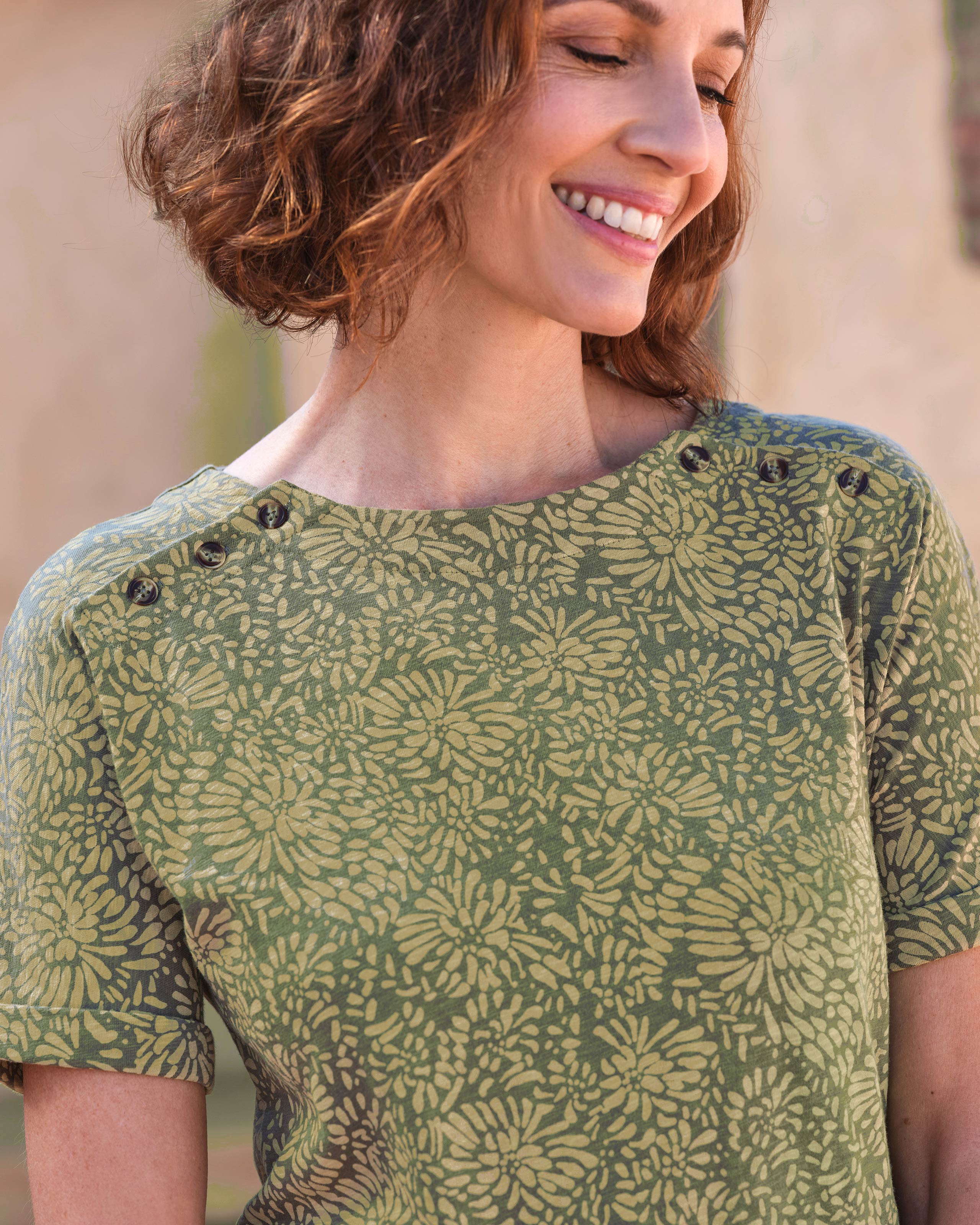 Tonal Print | Button Detail Curved Hem Tunic | WoolOvers AU
