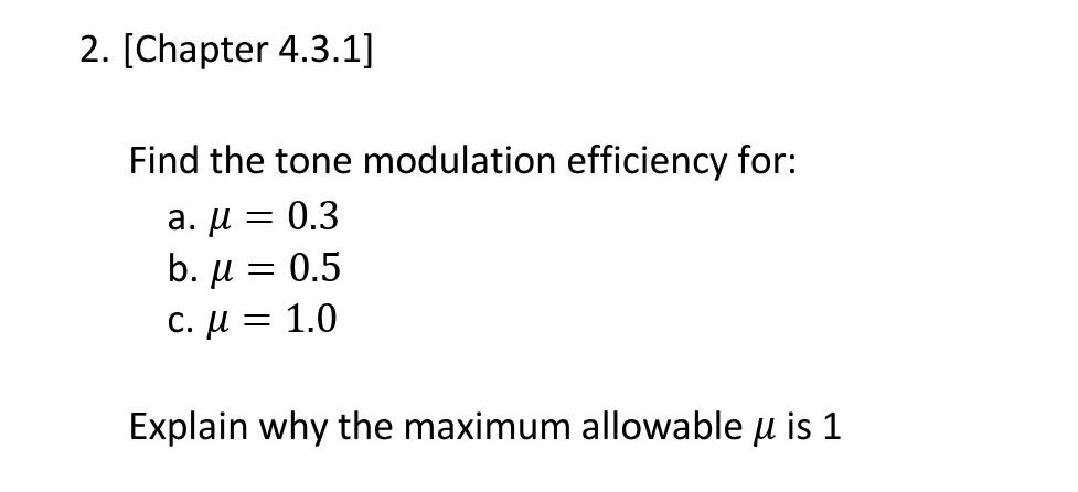 Solved 2. (Chapter 4.3.1] = Find the tone modulation | Chegg.com