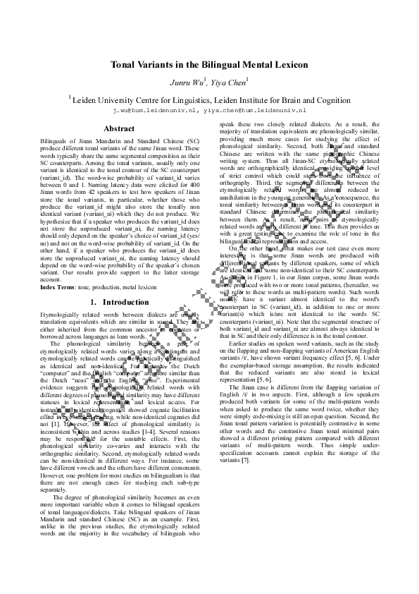 (PDF) Tonal Variants in the Bilingual Mental Lexicon
