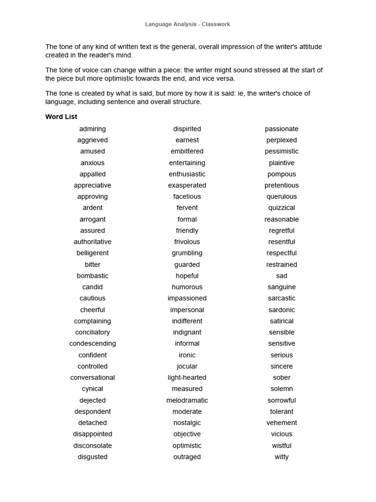 How to analyse tone - Analysing tone in Critical Reading - Higher ...