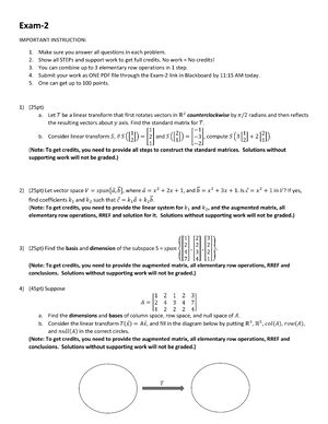 Sample final Exam key - MAT-2233-001-Spring 2023-Linear Algebra Tong Wu ...
