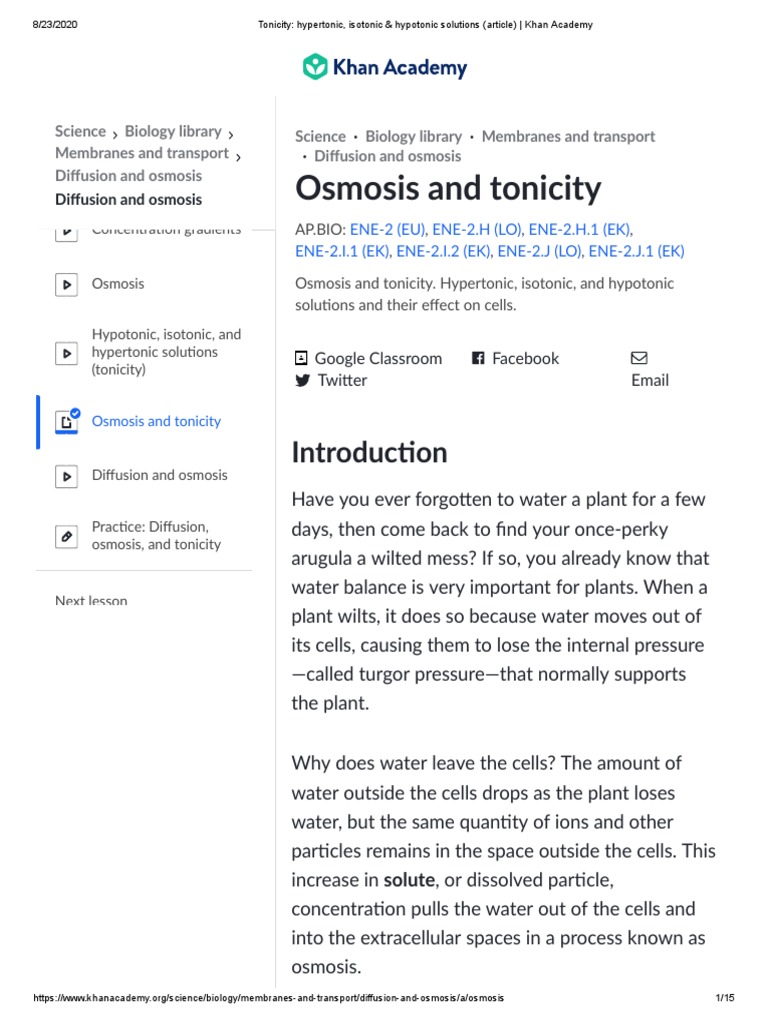 Tonicity: hypertonic, isotonic & hypotonic solutions (article) | Khan ...