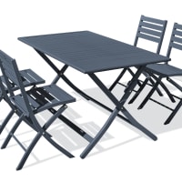 Salon de jardin, 6 personnes en aluminium et polywood, blanc/marron ...