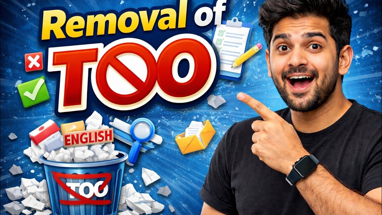 Removal of TOO | English Grammar Trick in Hindi | Easy Rules + Examples ...