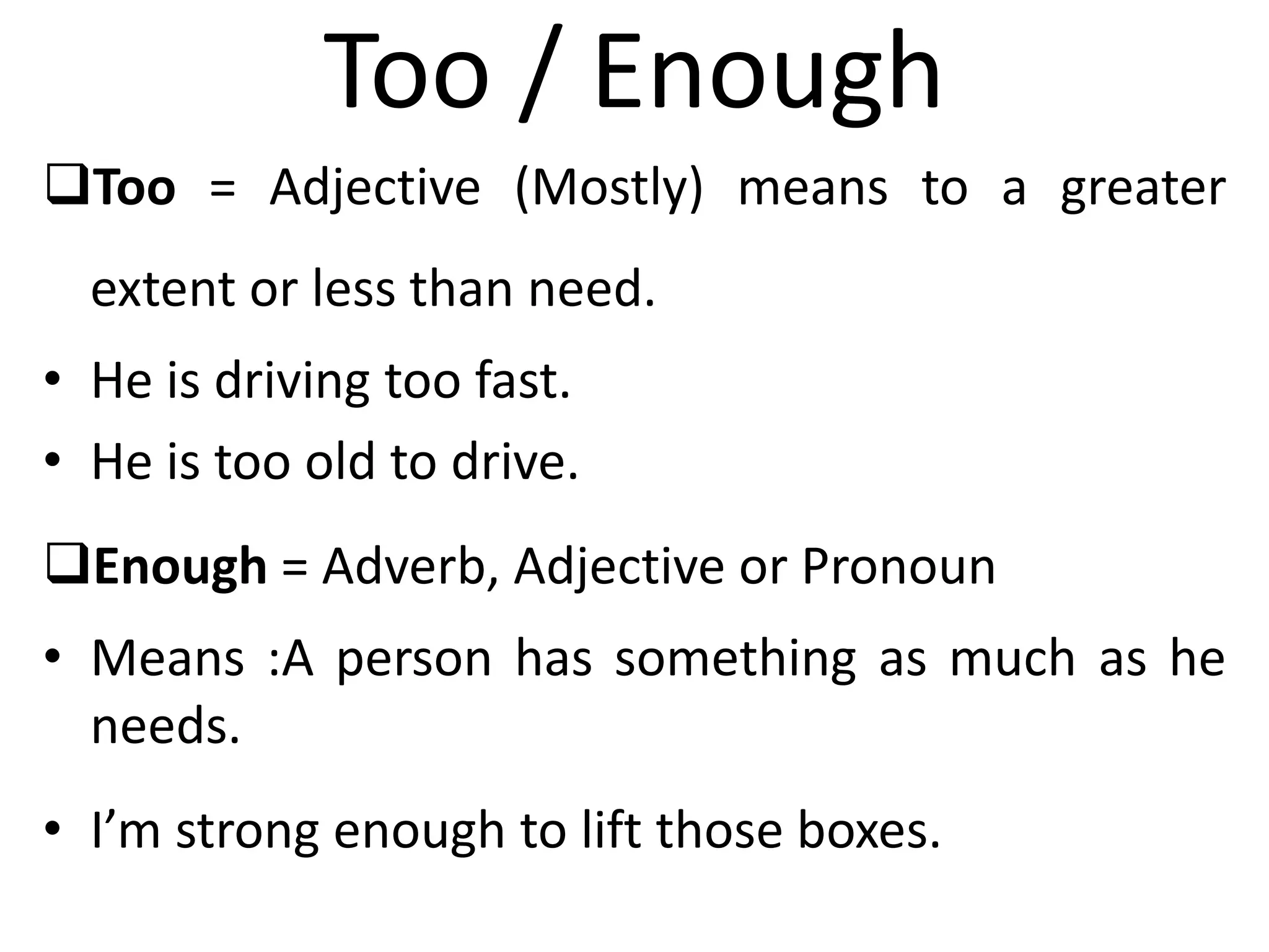 How to Use Too and Enough with Adjectives and Adverbs Correctly ...