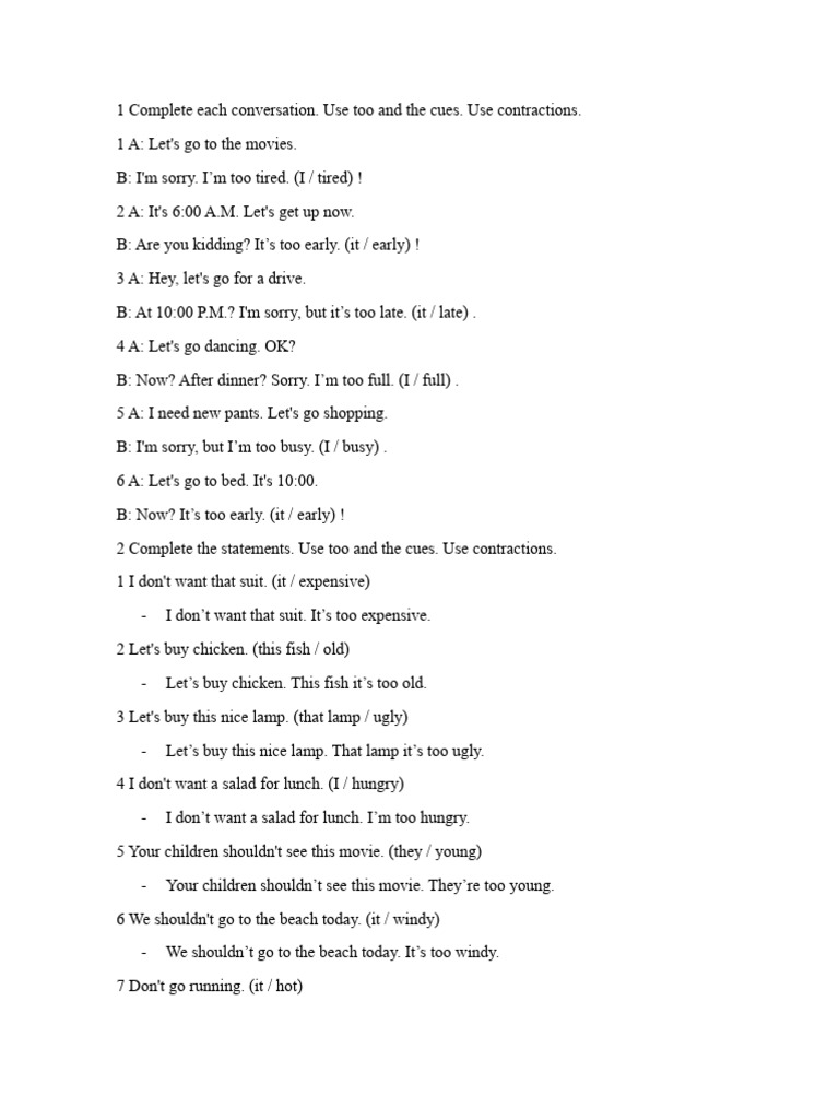 Too Adjective Infinitive English and Enough Worksheets - JPG | PDF